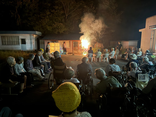 今年は久しぶりに外へ出ての開催、手持ち花火や吹き上げ花火を楽しみ、