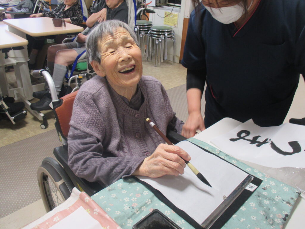 獅子舞や書初めの中で利用者の皆様から素敵な笑顔を見せて頂くことが出来ました。